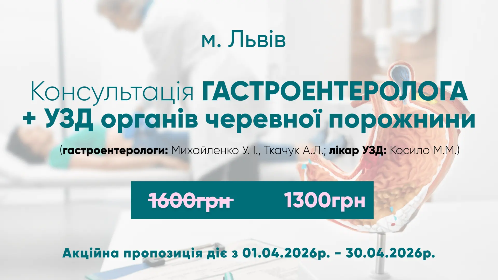 Деталі АкціїКомплексна перевірка шлунково-кишкового тракту — в одному візиті. Не відкладайте турботу про себе — скористайтесь акцією вже зараз....