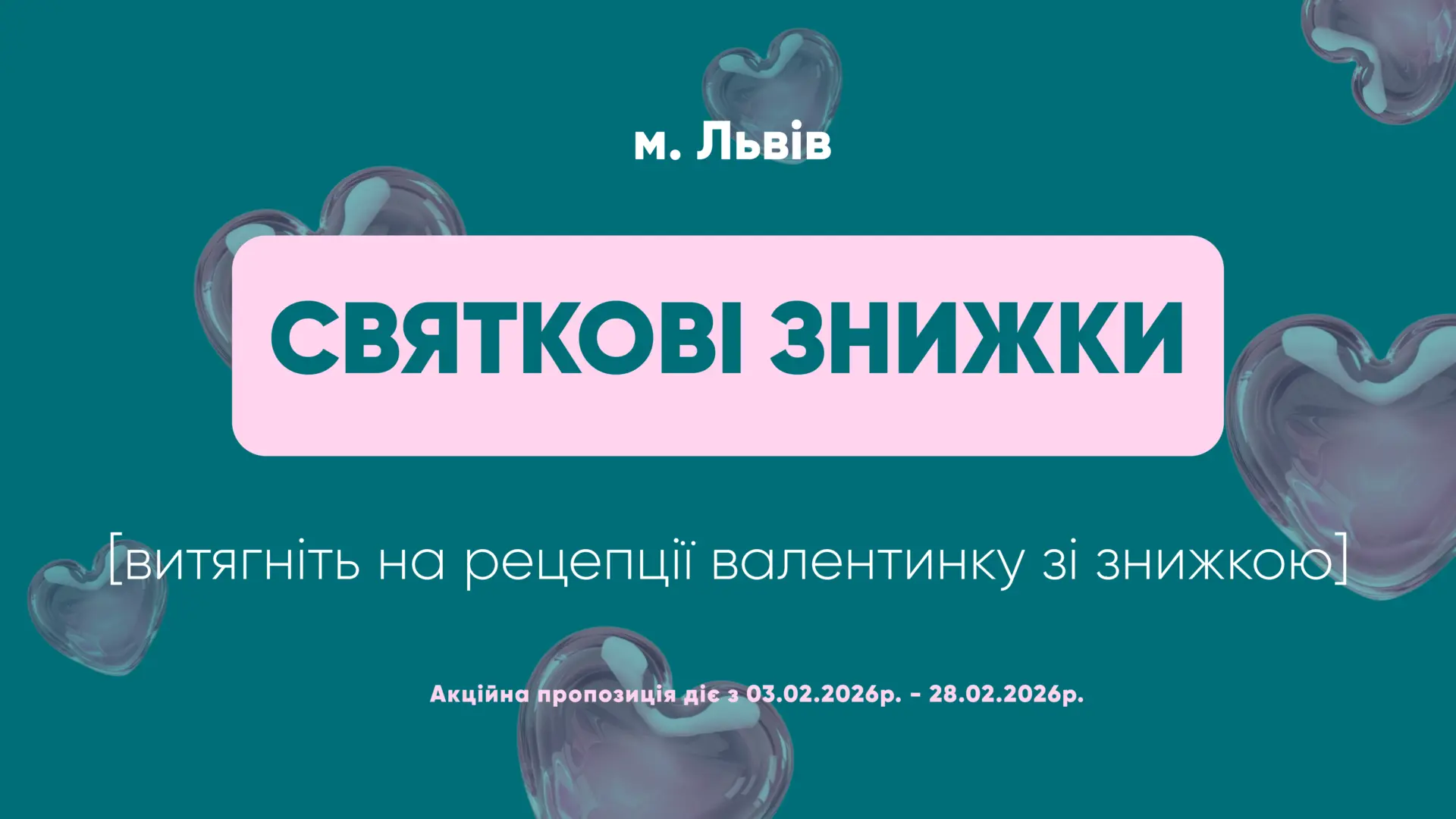 Діставайте валентинку на рецепції та отримуйте святкову знижку на послуги.Нехай любов починається з турботи про себе....