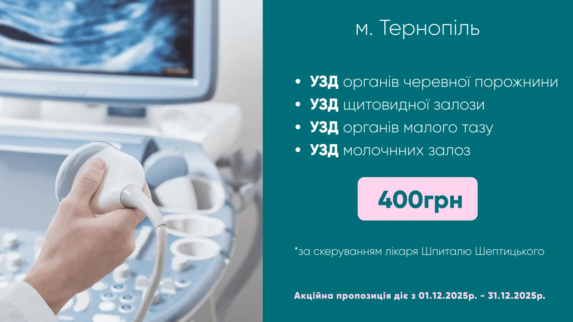 Деталі АкціїТурбота про себе — це легко! Скористайтесь знижкою на УЗД за скеруванням сімейного лікаря Шпиталю Шептицького.Не відкладайте своє здоров’я!...