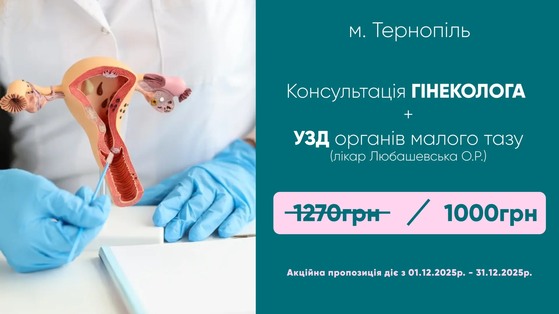Деталі АкціїКонсультація гінеколога + мамолога зараз зі знижкою!Не відкладайте своє здоров’я. ...